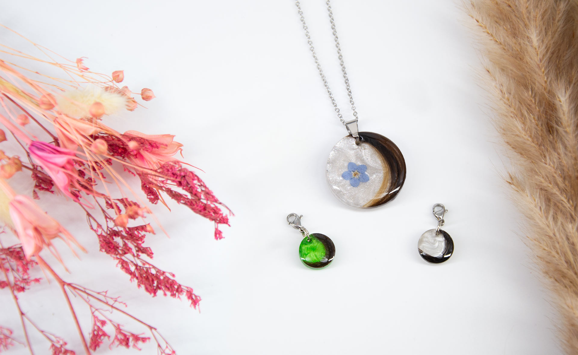 Ob Fell deines geliebten Tieres, eine Haarsträhne eines nahestehenden Menschen, kleine Zähnchen, getrocknete Blüten, Erde oder Asche – all diese wertvollen Dinge lassen sich in Armbändern, Ketten oder Schlüsselanhängern verewigen. Falls dir nur ein Foto deines Lieblings geblieben ist, biete ich auch Andenken mit Bildern an, damit du eine greifbare Erinnerung bei dir tragen kannst.